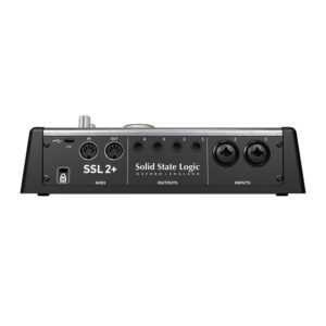 در جلوی کارت صدا ، دسترسی راحت به 2 ورودی DI اینسترومنت و 2 خروجی هدفون مستقل را فراهم می کنند. در قسمت عقب، SSL 2+ MKII ورودی های Neutrik XLR Combo را برای Mic/Line، چهار خروجی بالانس اسپیکر مانیتورینگ ، ورودی 5 پین میدی DIN MIDI I/O و کانکتور USB با فرم فاکتور تایپ C را ارائه می کند.
