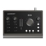 این کارت صدای USB-C با ده ورودی و چهارده خروجی، دارای دو پری امپ میکروفن کنسولی Audient، یک ورودی اینسترومنت JFET، چندین مبدل رده بالا، کانکشن ADAT و یک میکسر DSP می باشد. این کارت صدا دارای دو پری امپ میکروفن Class A است که در کنسول های Audient استفاده می شود؛ دقیقا همان پری امپی که در کنسول ضبط Audient ASP8024-HE وجود دارد؛ این مدار علاوه بر نویز و دیستورشن بسیار کم خود، کاراکتر صوتی آنالوگ را نیز چاشنی کار خود قرار می دهد. با گین 60 دسی بلی، شما می توانید از میکروفن های ribbon دلخواه خود برای ضبط صدای منابع صوتی که صدای آرامی دارند استفاده کنید. ورودی DI این محصول که بر اساس ورودی یک آمپلی فایر tube کلاسیک شبیه سازی شده، به ارتقا کیفیت صدای شما منجر می شود. اگر طرفدار کیفیت مدل iD44 هستید ولی آن همه ورودی/خروجی به کارتان نمی آید، iD24 بهترین گزینه برای شماست..