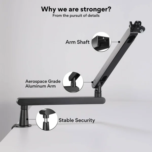 پایه میکروفون بازویی طراحی شده برای میکروفون های سنگین. مناسب استودیو، ،و با قابلیت اتصال بر روی میز کار شما میتوانید میکروفون را به هر کجا وصل کنید.