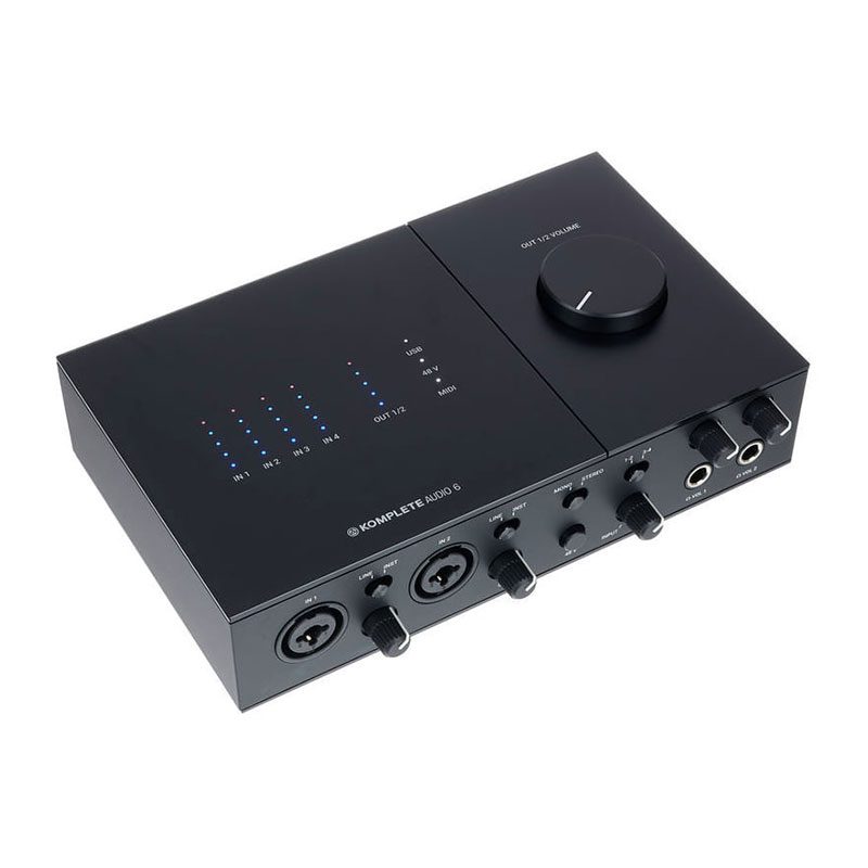 یکی دیگر از کارت صداهای سری Komplete مدل Audio 6 MK2 می باشد که با شش ورودی و شش خروجی یک کارت صدای استودیویی کامل محسوب می شود؛ این کارت صدا با عرضه صدایی بسیار با کیفیت، تاخیر بسیار پایین و کانکشن های متنوع یکی از بهترین گزینه ها برای استودیوی شما می باشد. شما می توانید میکروفون ها، گیتارها و سینتی سایزرهای مختلف را به آن متصل کنید، با استفاده از Send و Return ها افکت اضافه کنید و درام ماشین و سینتی سایزرها را کنترل کنید. به علاوه شما برای راه اندازی این کارت صدا نیاز به نصب برنامه خاصی ندارید و با استفاده از سیستم Plug And Play این دستگاه می توانید به راحتی بعد از اتصال به سیستم کار خود را شروع کنید.
