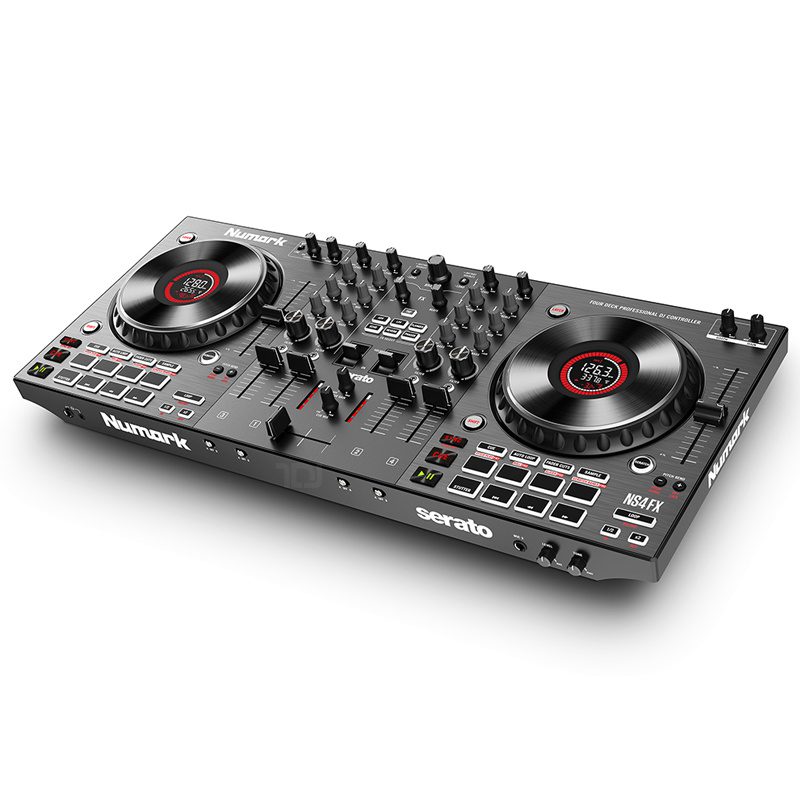 نترلر مدل NS4FX از کمپانی Numark یک کنترلر حرفه ای ۴ کانال با کنترل کامل ۴ دک نرم افزاری، کلید FX و ورودی ها و خروجی های حرفه ای است که پتانسیل میکس های خلاقانه را برای شما آزاد میکند. با کنترل کامل صدا بر روی ۴ کانال مستقل، دیجیها میتوانند آهنگها، سمپلها، لوپها و موارد دیگر را تا حداکثر ۴ دک نرمافزار دیجی به طور همزمان با هم میکس کنند. هر ۴ کانال NS4FX دارای فیدرهای صدا با کیفیت بالا، EQ ۳ باند با کشتن (Kill) کامل، و ناب های فیلتر بالا گذر/ پایین گذر هستند. سوئیچ های اختصاص پذیر Crossfader در پنل جلویی به هر کانال اجازه می دهد تا به سمت A یا سمت B کراس فیدر اختصاص داده شود یا می توان آن را طوری تنظیم کرد که به طور کلی از crossfader عبور کند.