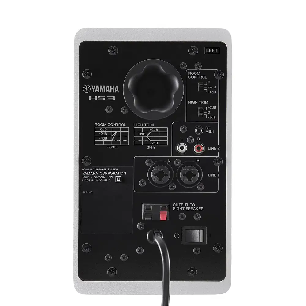 - HS3 یک اسپیکر مانیتورینگ زیبا محصولی از شرکت یاماها است که شما را برای رسیدن به هدف مورد نظرتان همراهی می کند. وجود ووفر سفید رنگ که ذهن ها را معطوف اسپیکر مانیتورینگ معروف دهه 70 یاماها با نام تجاری NS-10S می کند. وجود دو آمپلی فایر هر یک با توان 26 وات نیاز کسانی را که دارای فضایی محدود برای اتاق کنترل هستند را به خوبی رفع می کند.